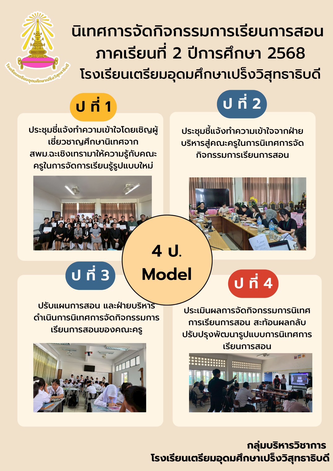 ดำเนินการโครงการนิเทศการจัดกิจกรรมยกระดับคุณภาพการศึกษาด้วย "4 ป. Model" สู่ความเป็นเลิศทางวิชาการ ภาคเรียนที่ 2 ปีการศึกษา 2568