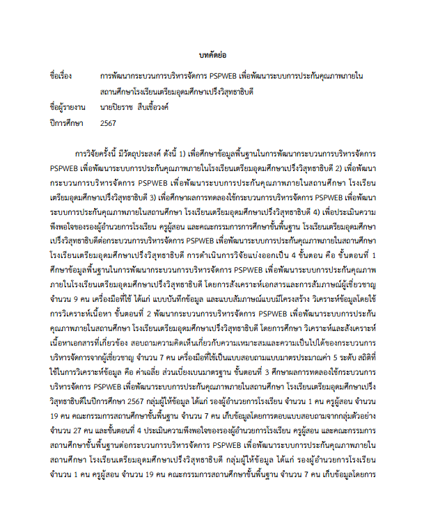 การพัฒนากระบวนการบริหารจัดการ PSPWEB เพื่อพัฒนาระบบการประกันคุณภาพภายใน สถานศึกษาโรงเรียนเตรียมอุดมศึกษาเปร็งวิสุทธาธิบดี (26 สิงหาคม 2568)
